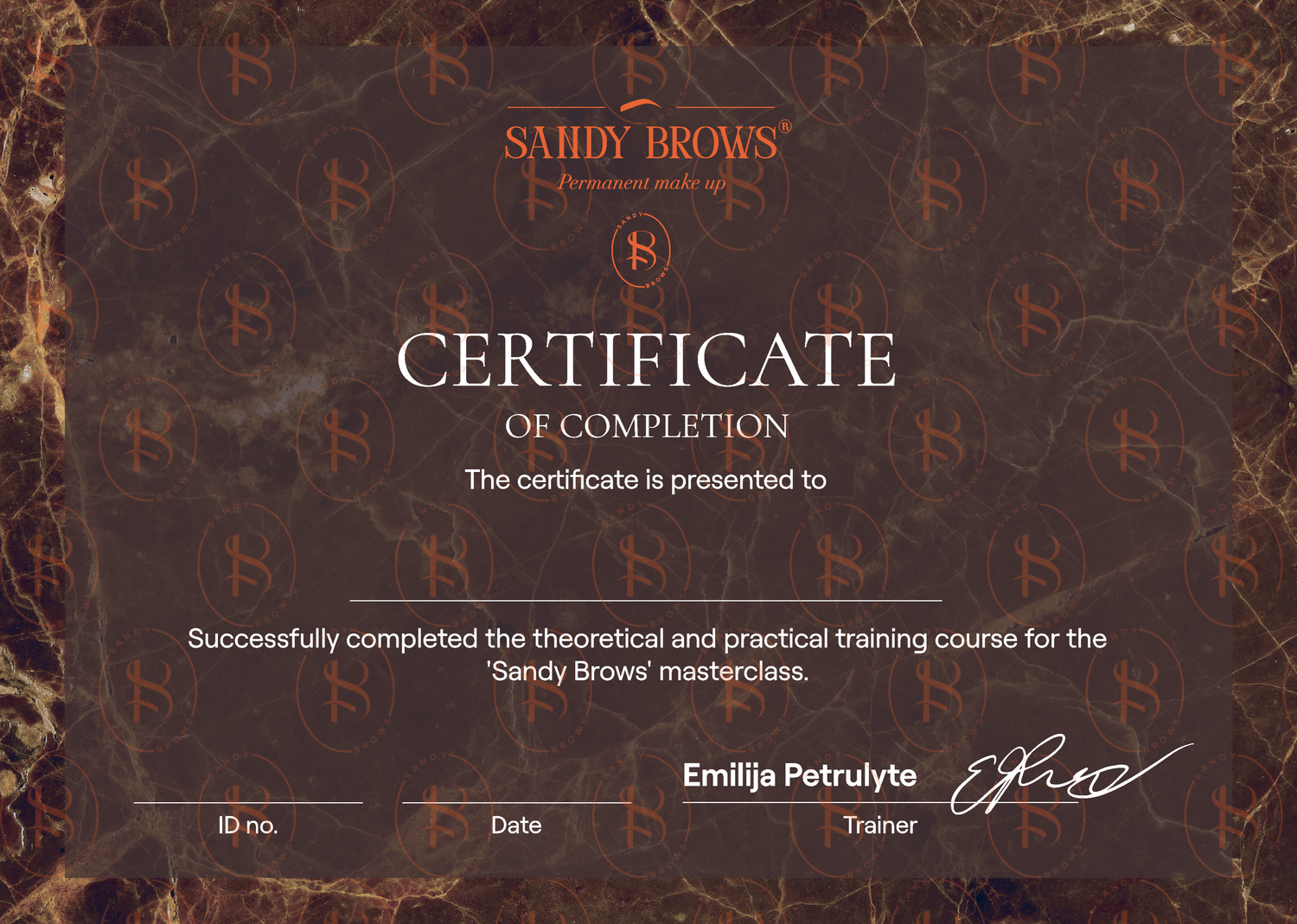 Once you complete the course, you’ll submit your work to Emilija Petrulytė for review. After successful evaluation, you’ll receive your official Sandy Brows™ certificate.